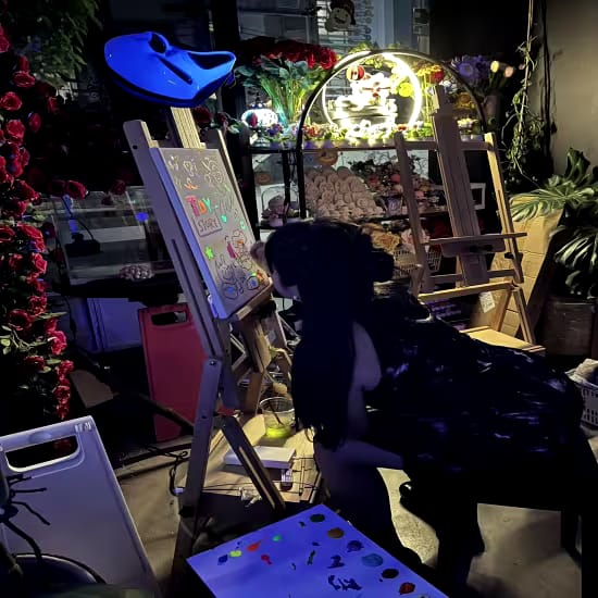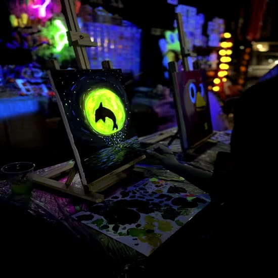 Unleash your creativity in a vibrant, glow-in-the-dark painting experience! Using fluorescent paints and UV light effects, create a masterpiece that shines both in daylight and glows spectacularly in the dark. Enjoy a complimentary glass of wine or sparkling mixer as you paint, making it a fun, relaxed, and social event.